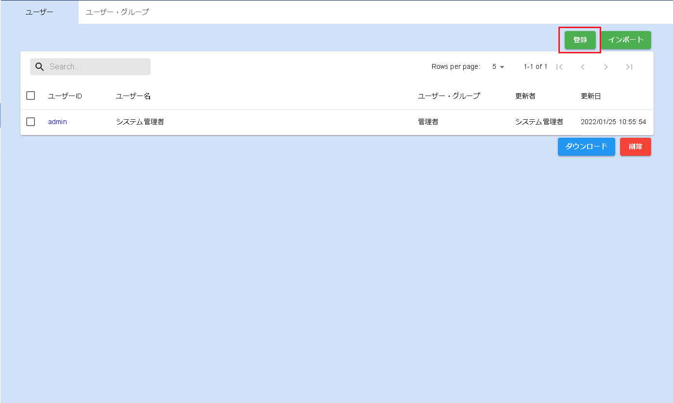 管理画面でユーザー・グループの登録を行います。
