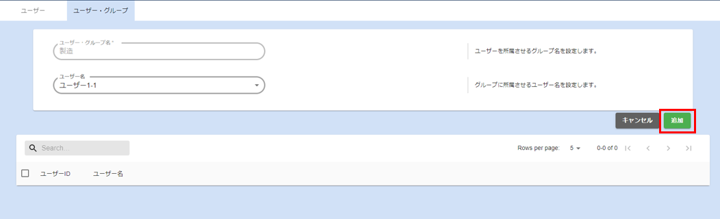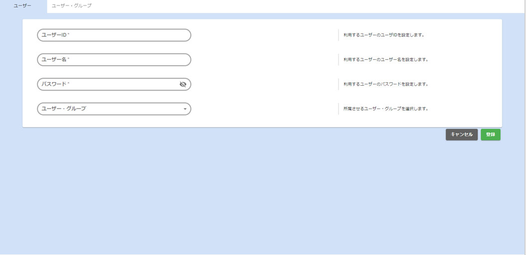 - ユーザー・グループ名入力欄にユーザー・グループ名を入力し、登録ボタンをクリックします。