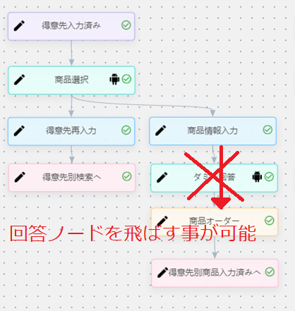 今回の修正で条件ノードからオーダーノードへ、回答ノードを挟まずにつなげることが出来るようになっています。