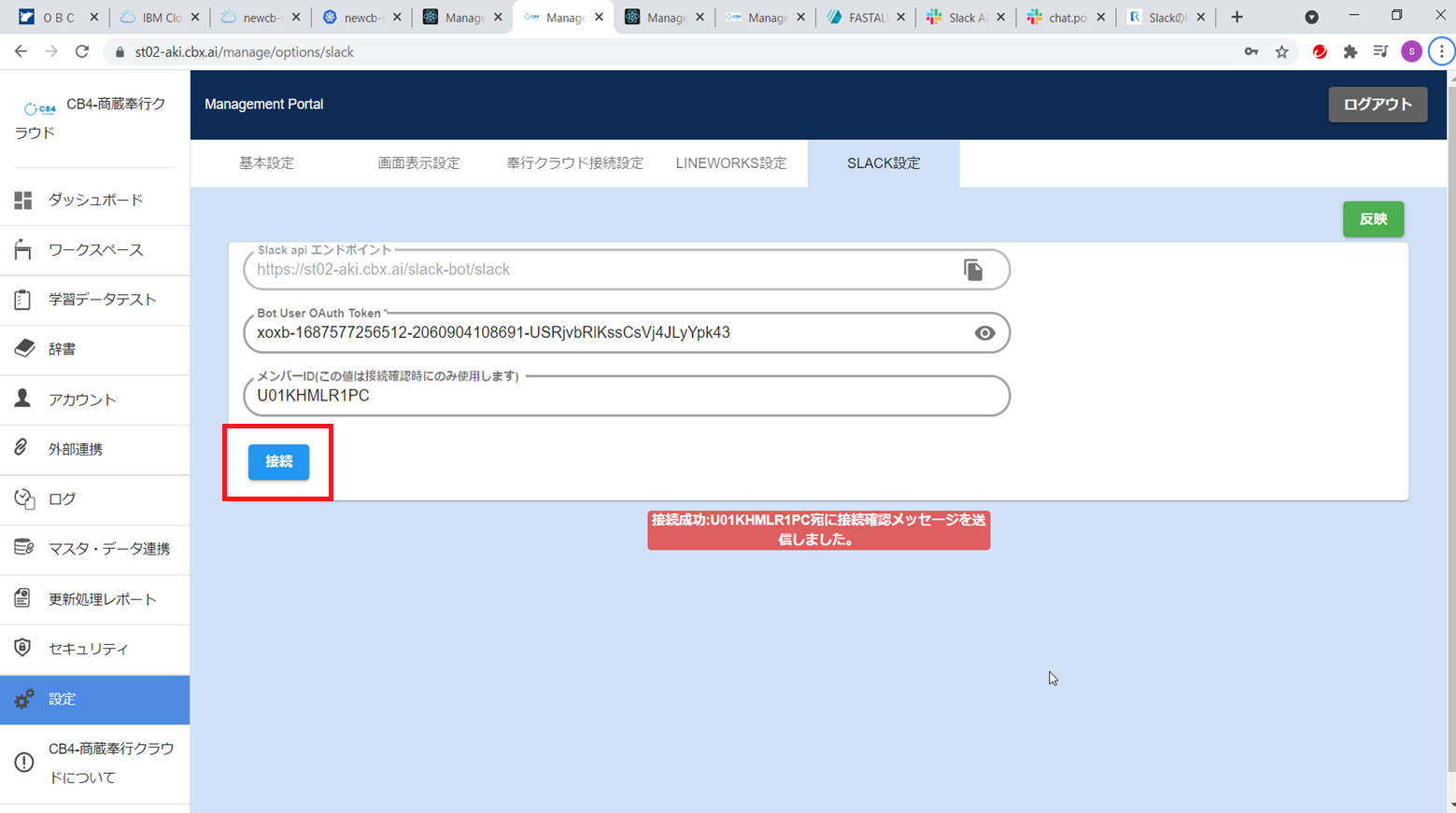 | 7 | Slackの設定画面に接続確認ボタンを設置 | 管理画面 |